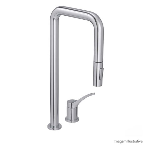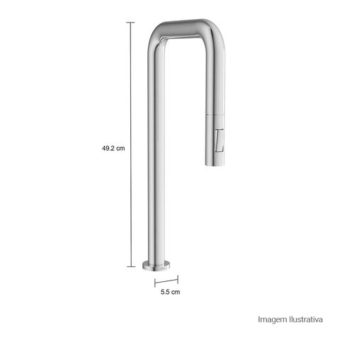 Bica móvel, permite o direcionamento do fluxo de água. Maior conforto e maior funcionalidade ao produto (na cozinha permite a utilização de cuba dupla, verifique medida do produto e da cuba dupla).